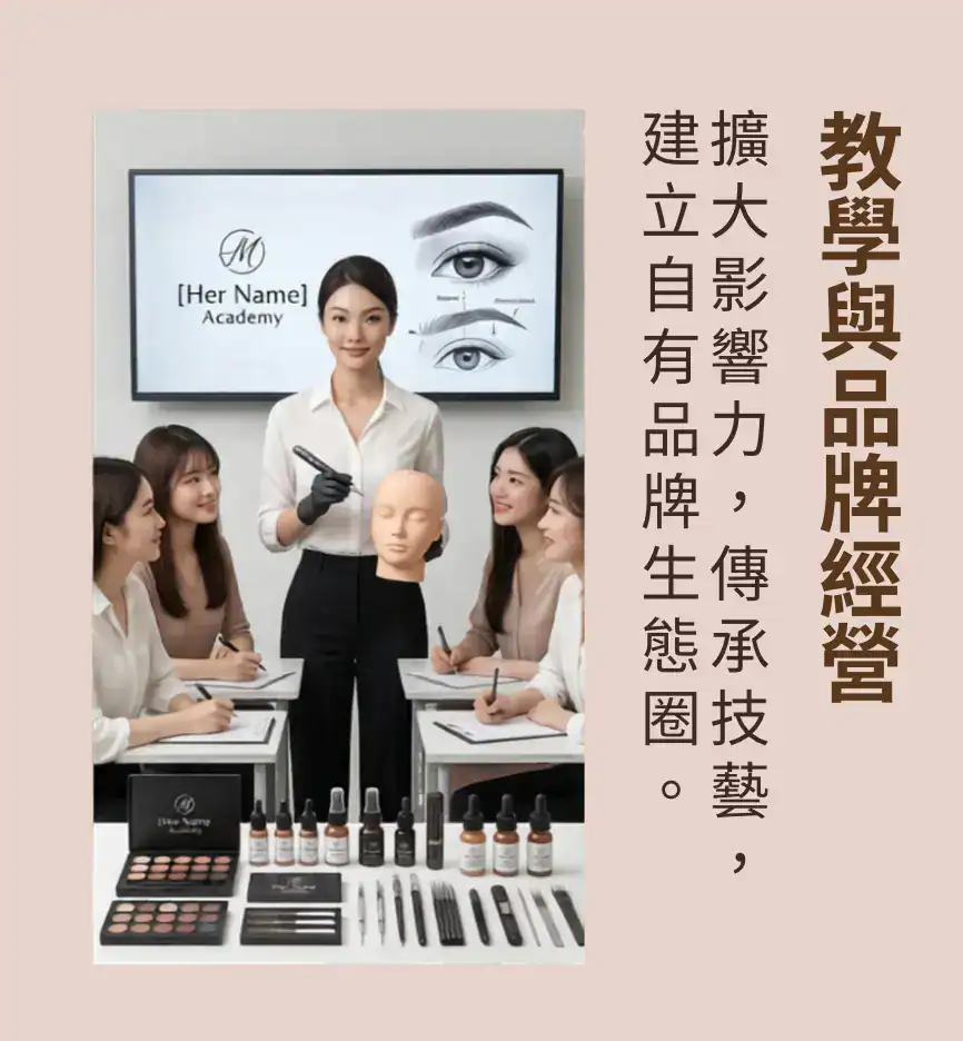 從自創眉筆、器材工具,到建立課程品牌,把個人影響力轉化為可複製的商業模式,是收入天花板最高、也最需要長期佈局的路徑